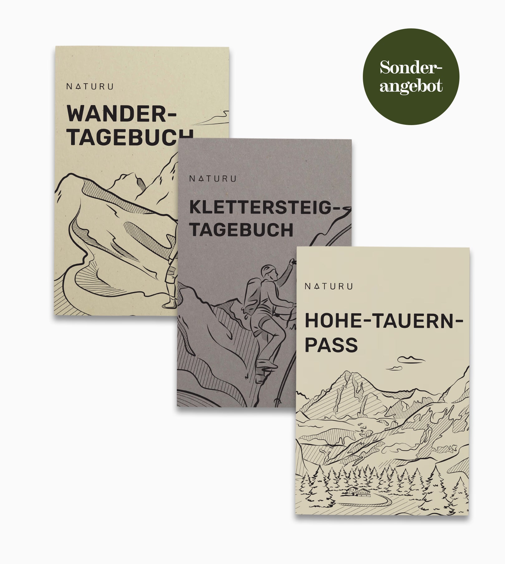 Wer schon einmal eine echte Alpenwanderung oder eine anspruchsvolle Klettersteigtour erlebt hat, weiß: Die schönsten Erlebnisse verdienen mehr als nur eine Erinnerung. Unser Wanderpaket vereint gleich drei unserer einzigartigen Begleiter: das Wandertagebuch, das Klettersteigtagebuch und den Hohe Tauern Pass – sie helfen dir dabei, all das Wichtige und Unvergessliche von deinen Abenteuern in den Alpen festzuhalten.