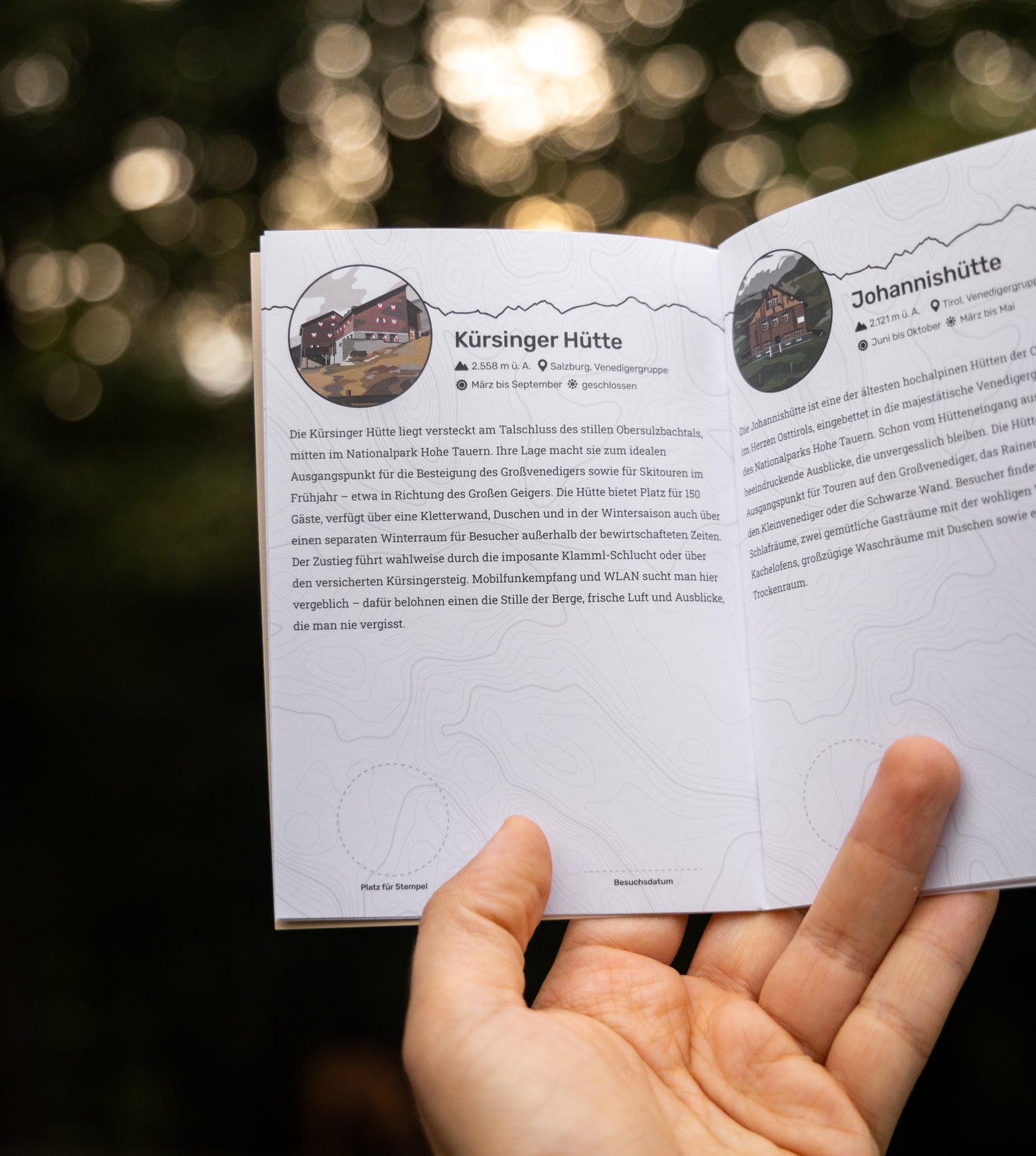 Entdecke die majestätischen Alpen mit dem Hohe-Tauern-Pass und besuche die bekanntesten Berghütten im Herzen des Nationalparks Hohe Tauern. Dich erwarten beeindruckende Gletscher, stille Täler und imposante Gipfel – und neben den Stempeln aus den Hütten sammelst du unvergessliche Kilometer voller Bergerlebnisse. Jeder Hütte haben wir eine eigene Seite gewidmet – mit einer originellen Illustration und einem Platz für den Hüttenstempel. Pack schon mal deine Sachen: Es ist Zeit für neue Abenteuer!