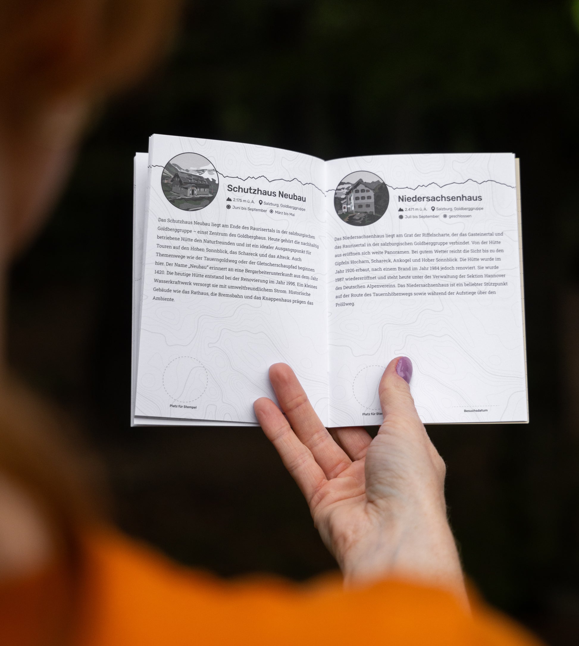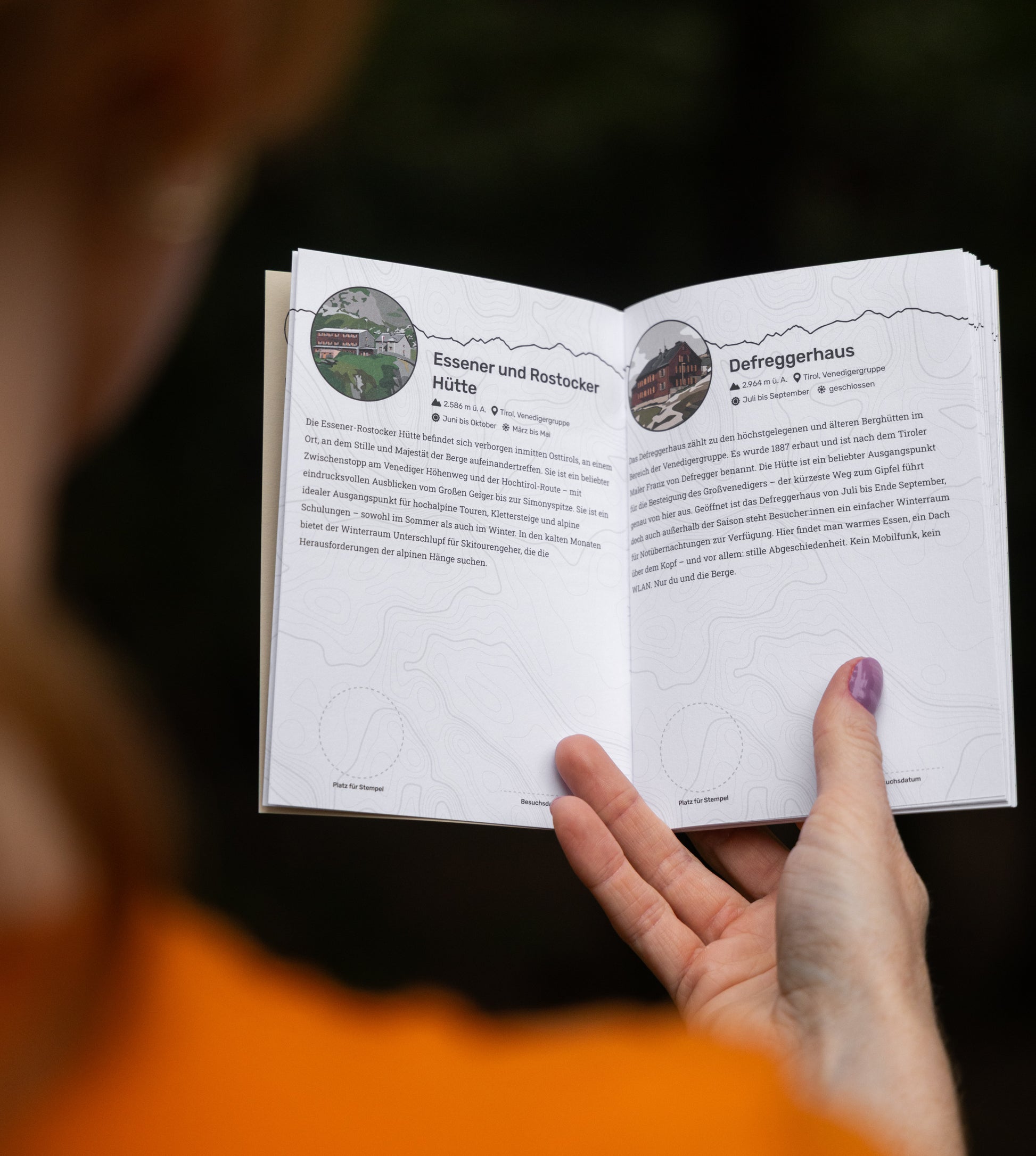 Jeder der 43 Hütten ist eine eigene Seite mit Platz für einen Stempel gewidmet.