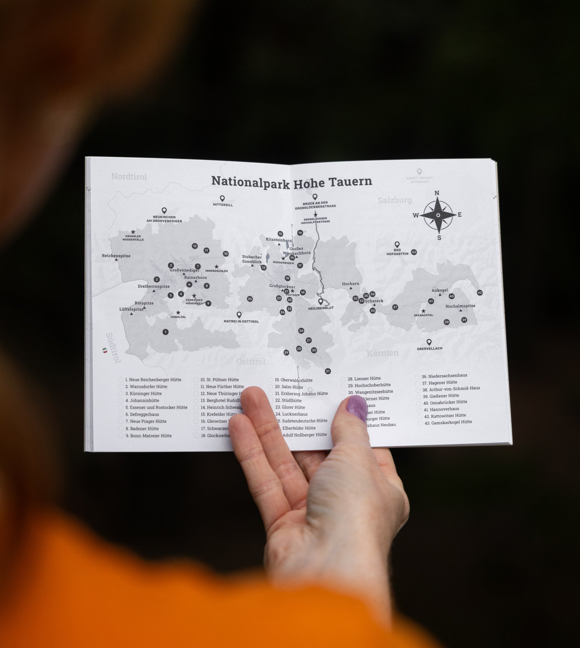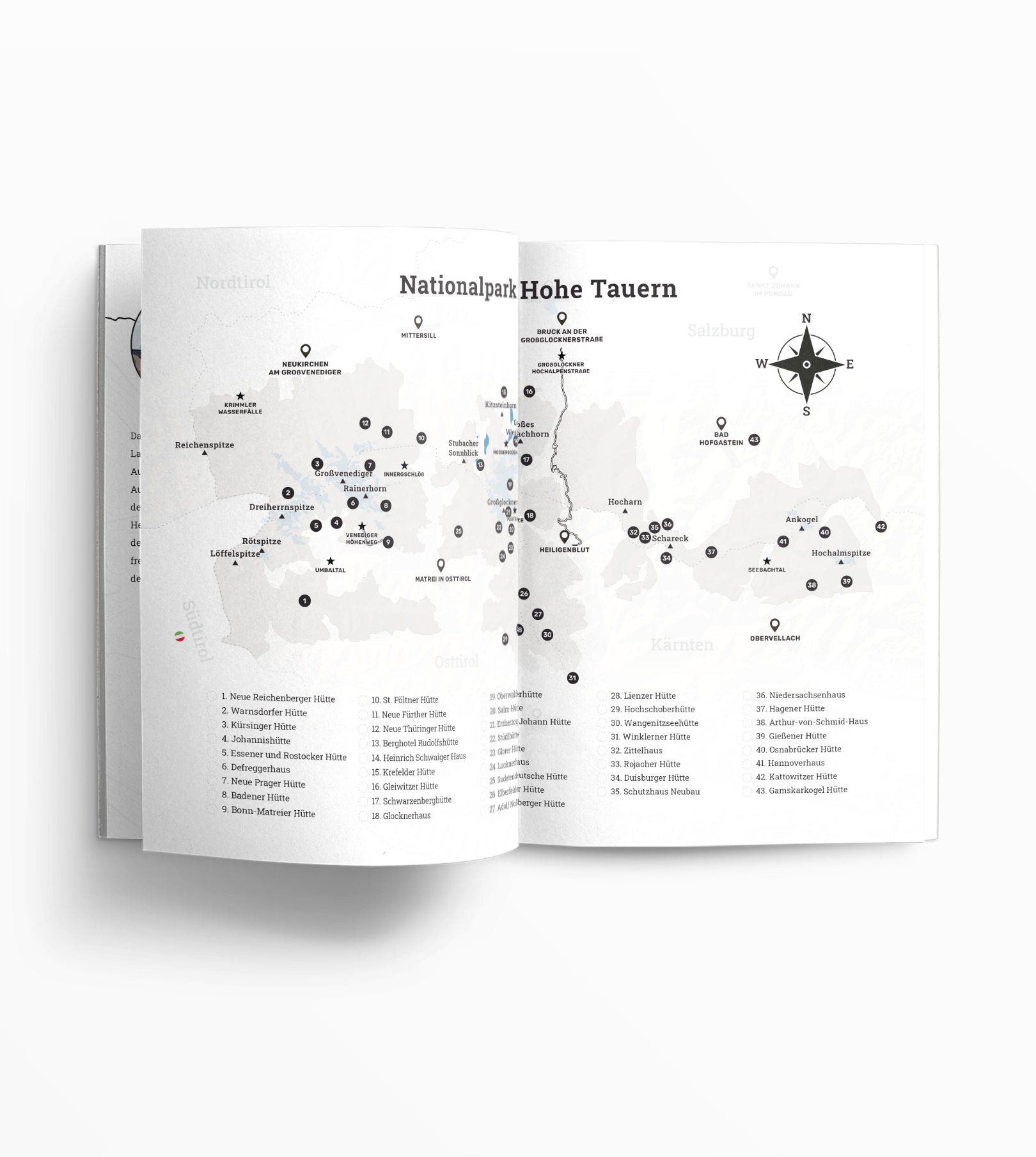 mit einer praktischen Übersicht der nummerierten Hütten zum Abhaken.