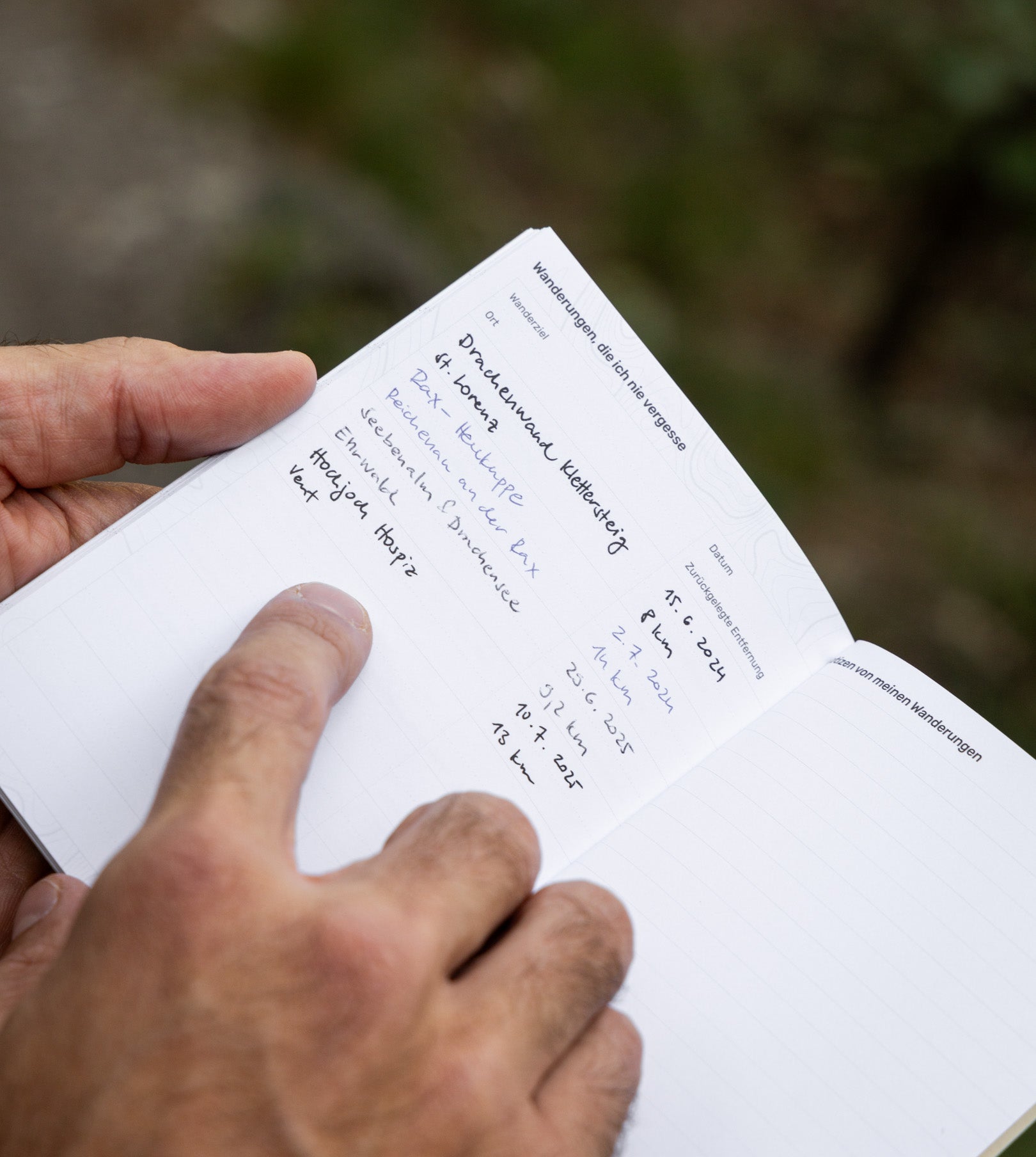 Notiere die Details deiner Wanderungen, sammle Stempel oder halte deine Gedanken und Eindrücke fest.